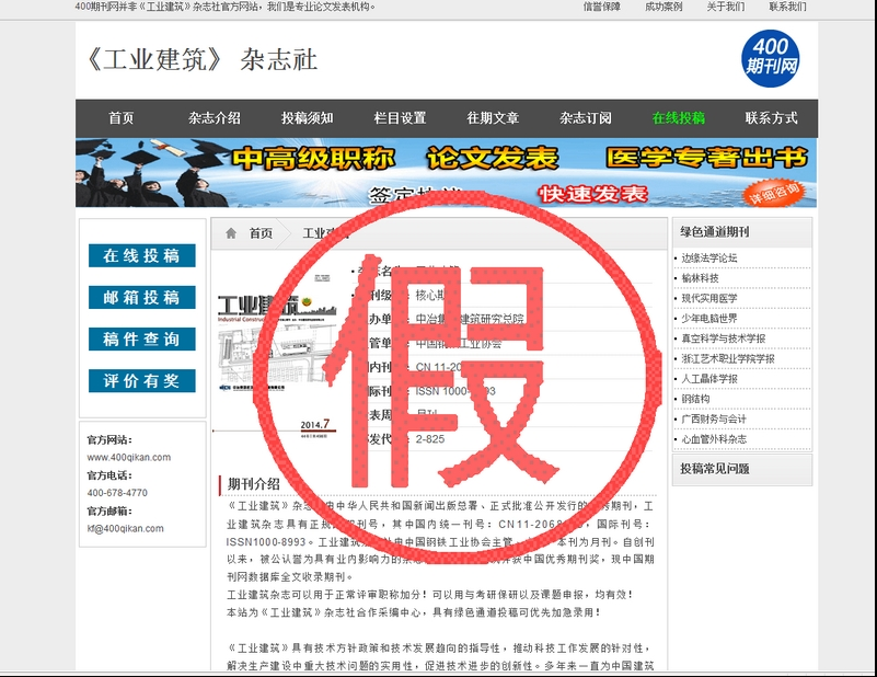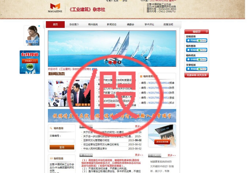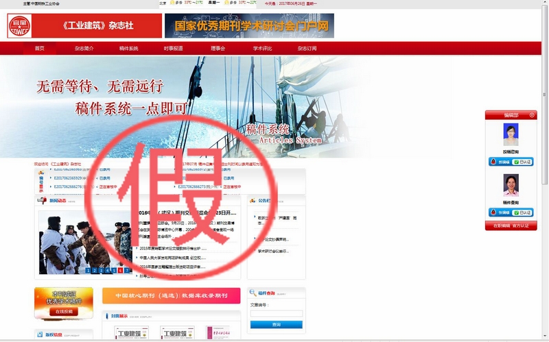 近日犯罪分子猖獗,我社已陆续收到作者反映,有多家网站或个人冒用我社三本期刊(《工业建筑》、《环境工程》、《钢结构》)名义征收稿件并收取高额审稿费,蒙骗广大投稿者。