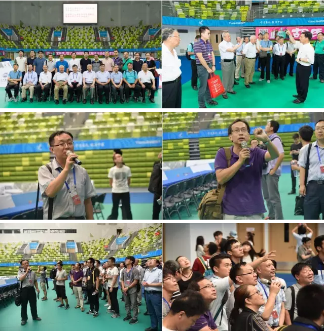 7月23日下午1:30,与会代表乘大巴车一同参观了天津理工大学体育馆,天大设计总院高级建筑师王聪向大家作了场馆建筑理念的讲解,向大家讲述了该体育馆外形“学海泛舟”、“扬帆起航的巨轮”的寓意,天大设计总院技术创新研究院副院长、高级工程师闫翔宇为大家进行了结构专业的讲解,包括索穹顶结构体系、屋面构造、节点连接等,代表们纷纷在现场热烈讨论交流,表示此次参观收获颇丰,在体育馆内拍照留以学习和纪念,代表们参观后乘大巴返程。